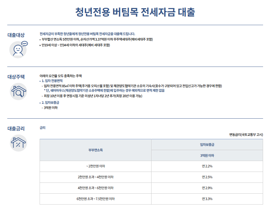 - 대상: 만 19~34세 무주택 세대주(예비 세대주 포함)