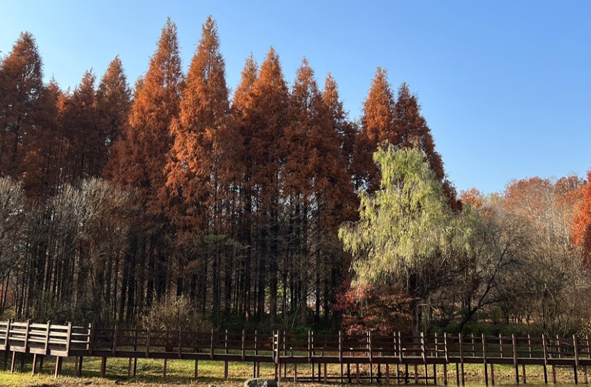 가을이 되면 정원마다 붉은 단풍과 노란 은행나무가 서로 경쟁하듯 물들어, 수목원 전체가 한 폭의 그림처럼 변합니다.