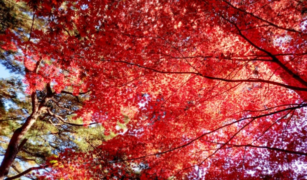 약 400여 종의 단풍나무가 만들어내는 다채로운 색감은 계단식으로 겹쳐져 있어, 어느 방향에서 보아도 그림처럼 아름답습니다.
