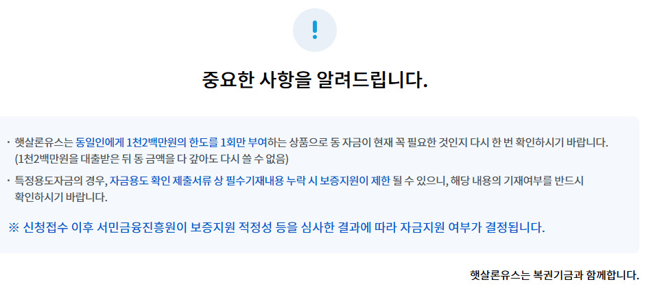 ④ 햇살론유스는 ‘생애 1,200만원’이 포인트 안내대로라면 전액 상환해도 재대출이 제한되는 구조가 될 수 있어요. 그래서 “정말 필요한 용도/타이밍”에 쓰는 게 유리합니다.